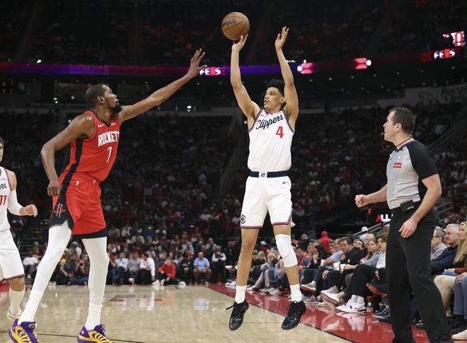 下半场易边再战,科林斯上来中投打进,但杜兰特开始找回进攻状态,连得7分,然后和申京挡拆助攻队友顺下暴扣。快船这边也是球球找小卡,两个超级巨星开始对飙,阿门暴力补扣,火箭最多领先到了6分。但此后双方陷入艰苦拉锯战,比分交替上升。申京在第三节节末连续内线强硬打进,三节结束火箭78-72领先6分。