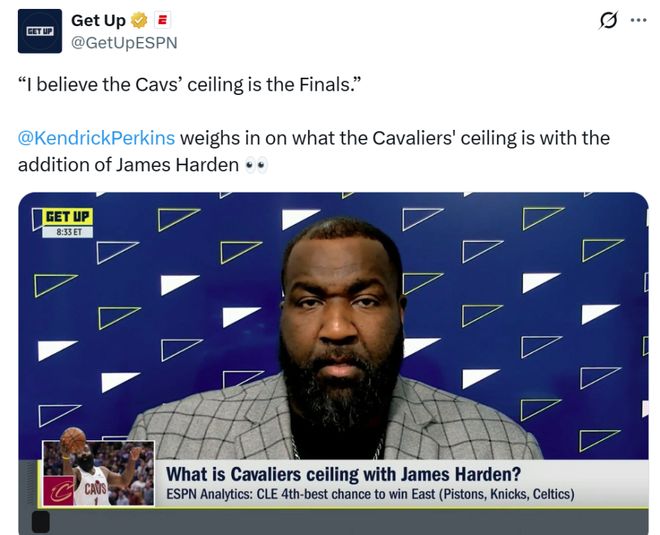 正如帕金斯在《Get Up》节目中所说:“当你引进得到有史以来最好的进攻球员之一、联盟过去三年中最好的组织者之一詹姆斯哈登后,会让队内所有的球员变得更好,哈登提升了克利夫兰骑士队的实力,他们至少要打进分区决赛,上限则是总决赛。”