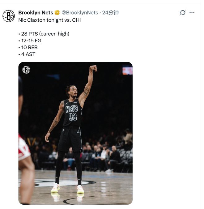 他不仅进攻端表现出色,防守端也压制公牛年轻内线布泽里斯和亚布塞莱,他们两个仅仅交出18中6的低迷投射。