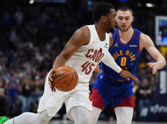 上半场哈登用突破抛射对付约基奇和瓦兰休纳斯,凑合管用;骑士继续哈登+加雷特·阿伦一组,米球+施罗德一组打。第四节初,米球组落后11分,哈登组上来。