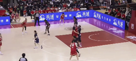 进入到下半场,中国队还是小阵容,陈明伶打中锋,唐子婷、罗欣棫打前锋,张曼曼和杨舒予后卫,罗欣棫马上三分命中。紧接着,杨舒予和罗欣棫再度配合成功。