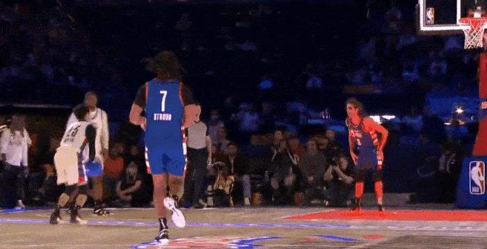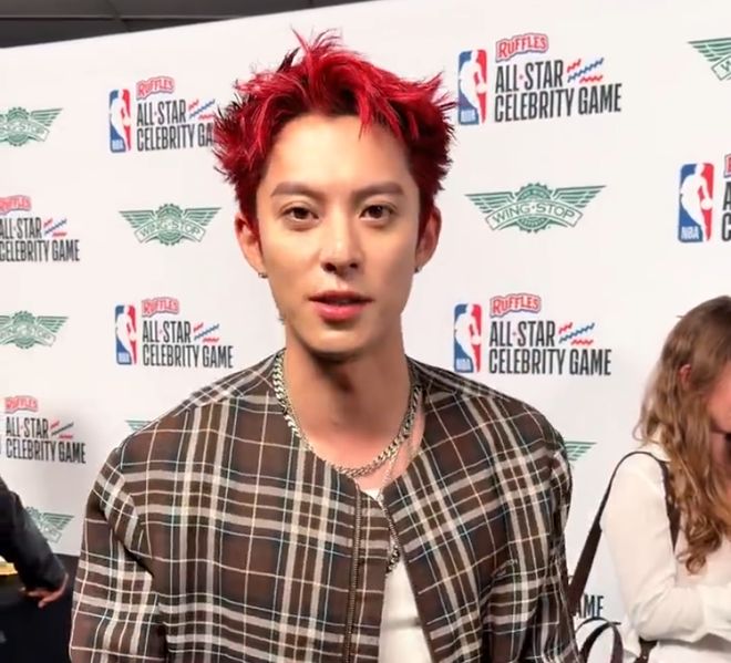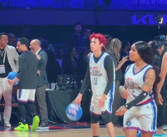 王鹤棣染一头红发亮相NBA名人赛,多次冲击篮下得手,全场9投5中,得到10分4篮板