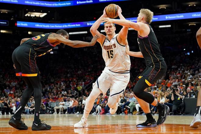 约基奇本赛季的基础盘非常夸张:场均 28.9分、12.2篮板、10.7助攻,投篮命中率 59.4%。