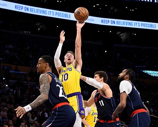 本场比赛中,刚刚在交易截止日前从亚特兰大老鹰加盟湖人的替补后场球员卢克-肯纳德(Luke Kennard)的表现还是相当不错的,也是展现出了比较全面的个人能力。肯纳德全场出场17分58秒,投篮6中4,三分线外3中1,得到了9分2篮板1助攻的数据,还有2次失误和3次犯规,正负值为+2。肯纳德的进攻效率还是相当不错的,他展现出了全面的得分能力,他能够通过各种方式得到了一些分数,他具备一定的突破能力,他也具备不错的外线投射能力,是一名进攻能力非常出色的球员。总体来看,肯纳德也是很好地起到了第二阵容关键人物的角色,他在进攻端的作用非常突出,他的一系列出色表现也为球队的胜利做出了巨大的贡献。