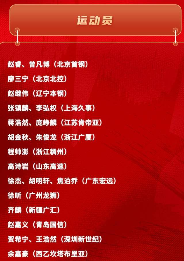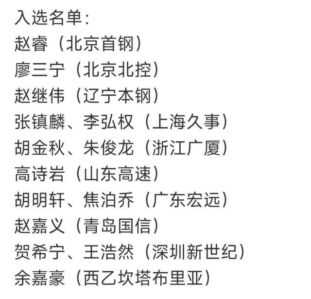 后卫球员包括:赵睿、廖三宁、赵继伟、高诗岩、胡明轩和贺希宁。