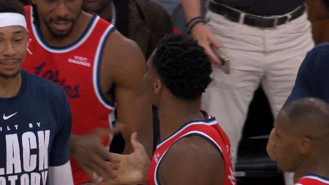 赛后的一幕值得注意,马瑟林错失绝杀后,自己非常沮丧,躺在地上迟迟没起,然后快船的队友们接连上前安慰他——虽然镜头比较快,但能看出来伦纳德对马瑟林说了几句激励的话。