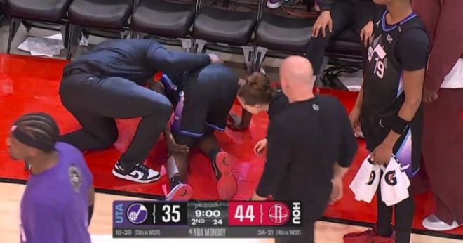 第二节比赛开局,爵士球员威廉姆斯被伊森撞倒,导致腿部出现明显反弯受伤,随后被抬出场,且爵士也宣布他因伤退赛,裁判没有吹罚伊森的动作。
