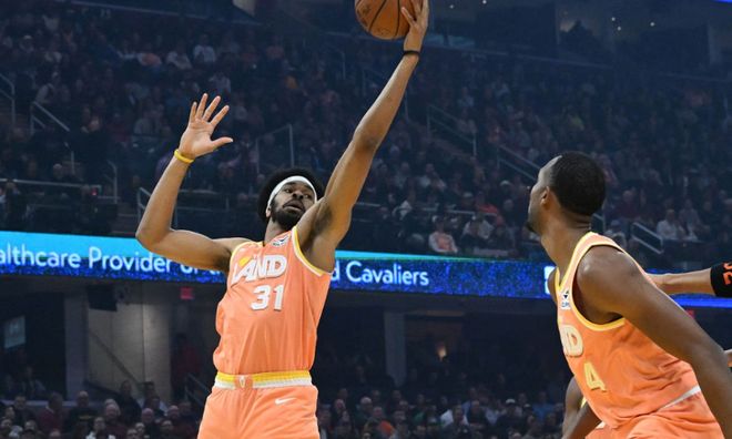 上半场,尼克斯三人得分上双,布伦森13分,唐斯11分5篮板,布里奇斯10分。骑士两人得分上双,米切尔15分4助攻,艾伦12分5篮板。哈登得到9分4助攻。