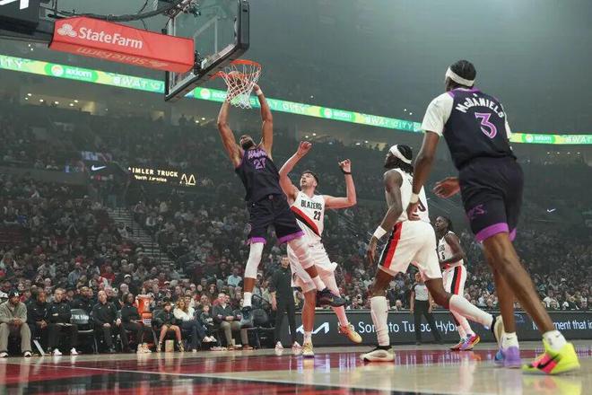 麦丹16中12,移动中接球虎虎生风,耍花飞扣,但最后半节开拓者逼得森林狼落半场攻防时,森林狼居然靠戈贝尔来撑进攻: