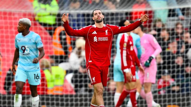 最终,本轮英超爆出大冷门,总身价10.4亿的利物浦主场1-1战平伯恩利,升班马13轮不胜继续排名倒数第二,利物浦虽然各项赛事12场不败,但已经遭遇联赛的4连平。