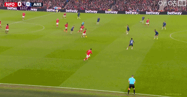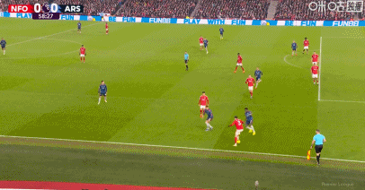 第54分钟,阿森纳连换三人,萨卡、热苏斯、梅里诺替补登场