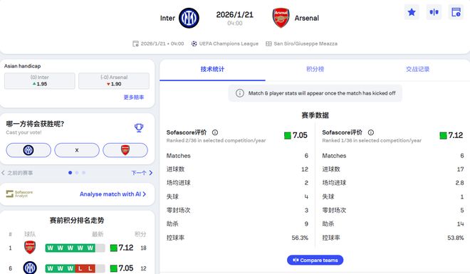 不过对比之下阿森纳会比国米更适应,对比球队框架及可用人手,阿森纳的也是相对多很多的。