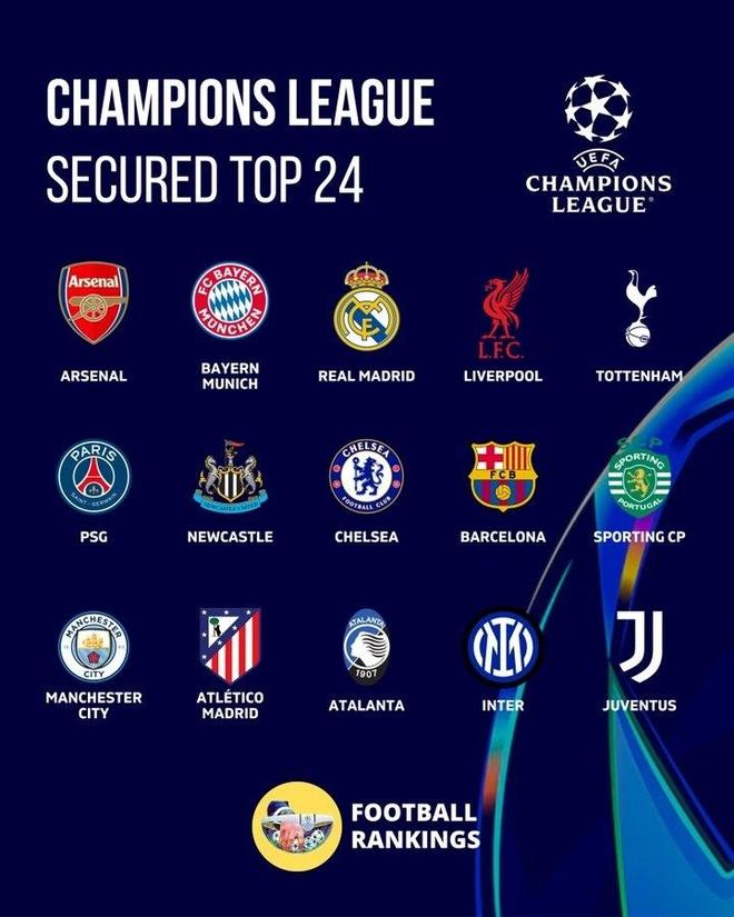 而巴萨、葡萄牙体育、曼城、马竞、亚特兰大、国米、尤文、多特等共计16支球队则落入附加赛区,他们需要通过后续的附加赛争夺更进一步的机会。
