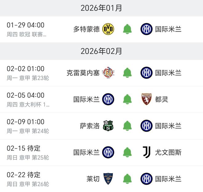 现在,国米一月份只剩1场与多特蒙德的欧冠比赛,对方目前还有直接跻身前八出线的机会,所以应该不会放水,国米想要在欧洲著名魔鬼主场威斯特法伦球场拿分难度相当大,当然即便取胜也很难直接挤进前四,这也就意味着国米将在二月份多踢两场欧冠淘汰赛附加赛。加上一场意大利杯与都灵的1/4决赛的比赛,国米整个月要踢7场比赛,而且欧冠附加赛还是在国家德比之后进行,这对国米双线备战都会有些影响,不过尤文大概率也要踢附加赛,这对双方来说是公平的。