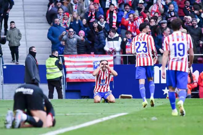 比赛尾声阶段,马竞并未因领先而放松攻势,反而继续向对手施压。第87分钟,马竞年轻小将阿尔马达在禁区前沿得球。他凭借个人能力,利用娴熟的脚下技术连续内切,晃过了两名防守球员,随即在禁区弧顶处起脚劲射。皮球如炮弹般直挂球门死角,马略卡门将对此鞭长莫及。凭借这粒精彩的进球,马竞将比分锁定为3比0。