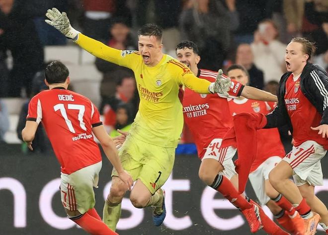 在那么多的豪门球队中,皇马输球是让人比较意外的,客场2-4输给了本菲卡。上半场第30分钟姆巴佩的进球先拔头筹,但是不到6分钟的时间谢尔德鲁普的进球就扳平了比分,帕夫利季斯的点射反超。下半场回来谢尔德鲁普再进一球,把比分扩大3-1;第58分钟皇马依靠姆巴佩的第二粒进球缩小分差。主场作战的本菲卡还需要多一粒进球才能晋级附加赛,最后时刻奇迹出现,门将特鲁宾读秒头球破门,将最终的比分锁定在4-2,压哨晋级附加赛。