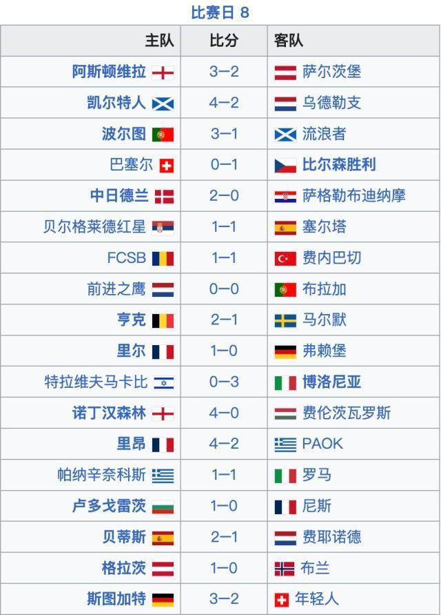 今晨,欧联杯联赛阶段第8轮即最后一轮战罢,排名座次及晋级球队尘埃落定。里昂、阿斯顿维拉、中日德兰、皇家贝蒂斯、波尔图、布拉加、弗赖堡、罗马分列前8名,直接晋级16强淘汰赛。其中五大联赛各有一队进入前八,葡超继续强势,有波尔图和布拉加两队。