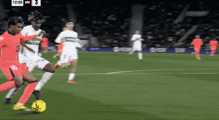 第72分钟,亚马尔边线极限停球后突破传中,后卫做出高难度拦截,拉什福德爆射破门。