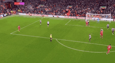 第36分钟,纽卡斯尔的进攻从左路来到右路,戈登的低射,攻破阿利松的十指关。