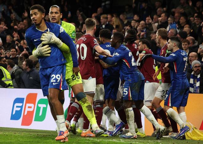 在北京时间2月1日结束的英超第24轮一场焦点战中,切尔西在主场先丢2球情况下,下半场连扳3球完成大逆转,击败了同城对手西汉姆联。而比赛补时阶段,双方爆发激烈冲突。