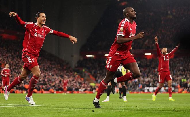 动容!利物浦1米94黑塔进球告慰亡父,跪滑+热泪盈眶,全队送拥抱