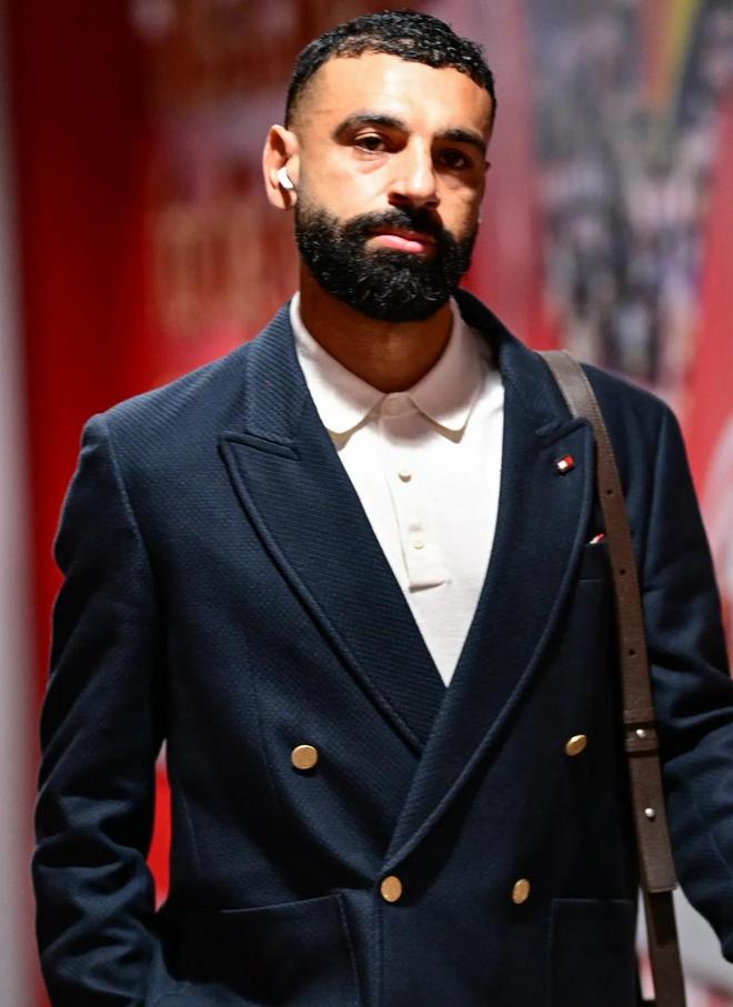 萨拉赫穿着一套西装、搭配流苏鞋走过通道时,神情显得有些低落。