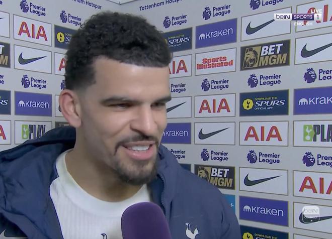 英超第24轮,热刺主场2-2战平曼城,赛后,此役上演梅开二度的热刺前锋索兰克接受了拜因体育的采访。