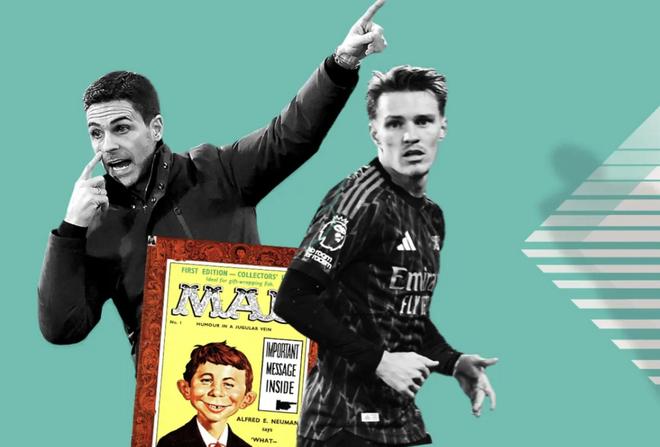 阿尔弗雷德-纽曼几乎从1954年起就出现在《Mad》杂志的每一期封面上。他是一个瘦削、牙缝很大的红发男孩,满脸雀斑、招风耳,带着一副有点傻气的笑容,身边常常配着那句同样不过脑子的座右铭:“我?担心什么?”(What, me worry?)这个赛季,纽曼这个角色,理应由阿尔特塔来扮演。