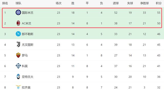 3-0!意甲争冠还有变数:米兰22轮不败+差榜首5分,国米有一隐患