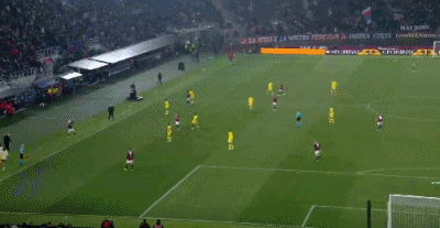 上轮那不勒斯惨败给尤文后,AC米兰也被罗马逼平,国米趁机抓住机会扩大领先优势,本轮国米继续赢球,AC米兰要不想继续被拉大分差,那么今天就要在客场拿下博洛尼亚。开场后AC米兰展开高效进攻,第7分钟,AC米兰中路快速反击制造杀机,奇克带球突入禁区获得单刀机会,只是他有些犹豫,最后想过掉门将拉瓦利亚时被拉瓦利亚将球扑住。第19分钟,AC米兰前场转移到右侧,阿特卡梅禁区角上晃开防守斜吊门前,恩昆库后点超近距离鱼跃头槌攻门,拉瓦利亚神勇将球扑出,门前混战中拉比奥特小禁区内抢到球回传做球,奇克近距离迎球大力推射,皮球应声入网,AC米兰1:0首开纪录。