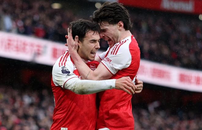 阿森纳排出了433阵型。马杜埃凯、热苏斯和特罗萨德的进攻三叉戟联袂出击。哈弗茨、马丁-苏比门迪和赖斯组成3中场。廷贝尔、萨利巴、加布里埃尔和卡拉菲奥里4后卫首发出战。戴维-拉亚担任首发门将。马丁内利、哲凯赖什、埃泽和莫斯克拉坐在替补席待命。
