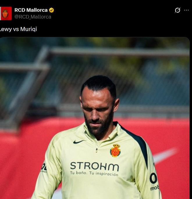 不久后,马略卡官方账号同样发帖并写上“莱万vs穆里奇”,配图换成了自家前锋穆里奇。