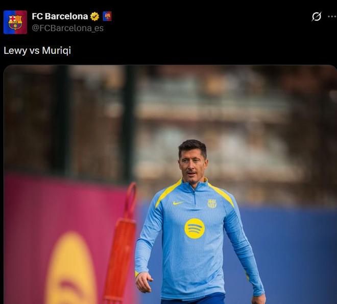 西甲第23轮巴塞罗那主场迎战马略卡,赛前巴萨官方在社交媒体上发布了一则造势帖,内容为“莱万vs穆里奇”,并配上了莱万的照片。