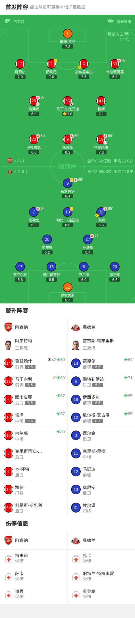 第90+4分钟,哲凯赖什推射空门完成梅开二度,阿森纳3-0桑德兰
