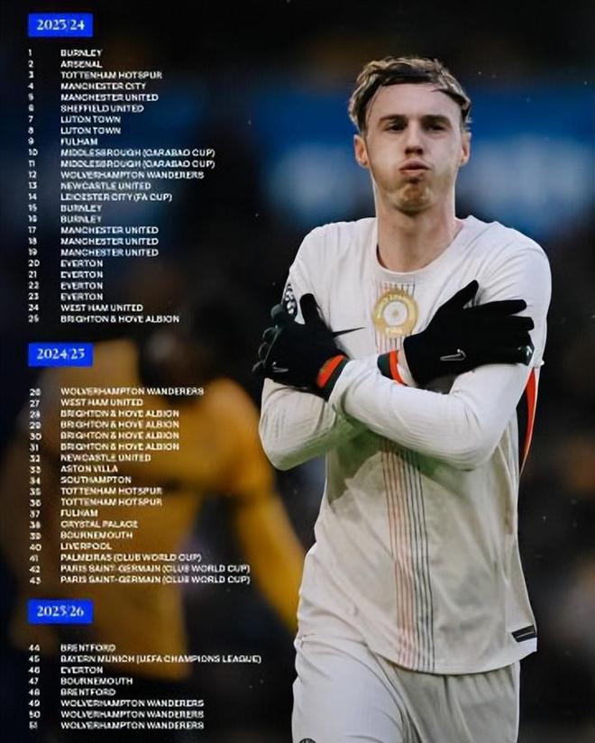 赛后数据显示,这是帕尔默为切尔西出战84场比赛以来的第4次英超帽子戏法,他也因此超越德罗巴、兰帕德等传奇球星,成为英超时代蓝军戴帽次数最多的球员,同时也成为英超首位3次在上半场上演帽子戏法的球员,书写了属于自己的蓝军传奇。