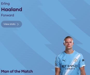 传射建功,哈兰德当选利物浦vs曼城全场最佳球员