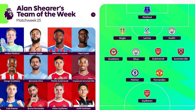 希勒评英超第25轮最佳阵:B席、格伊、B费、帕尔默、哲凯在列