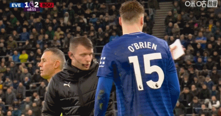 第69分钟,奥布赖恩放倒阿德利,裁判直接出示红牌将其罚下
