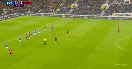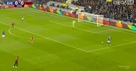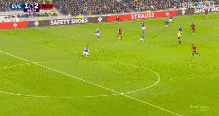 第42分钟,拉扬送点,恩迪亚耶主罚点球命中,埃弗顿1-0伯恩茅斯