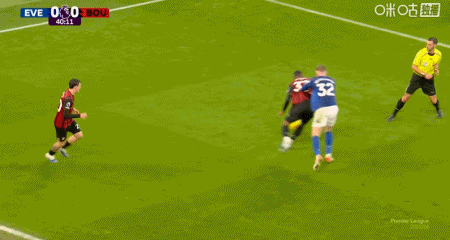 第61分钟,特吕费尔左侧传后点,拉扬头球破门扳平,伯恩茅斯1-1埃弗顿