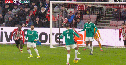 第36分钟,范戴克参与进攻一脚推射,皮球被顶出