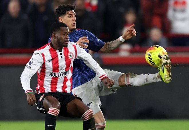 比赛刚刚开始4分钟,雅内尔特就因为拉人犯规被出示黄牌。3分钟后,拉亚出现低级失误,接回传球的时候差一点把球停进自家球门。幸好皮球滚动比较慢,他赶紧把球跑过去把球踢走,避免乌龙球。第22分钟,蒂亚戈头球攻门,被扑了出去。8分钟后,哲凯赖什犯规被出示黄牌。第43分钟,布伦特福德踢出犀利的反击,拉亚跑出禁区及时解围化解险情。半场结束,比分依然是0-0!