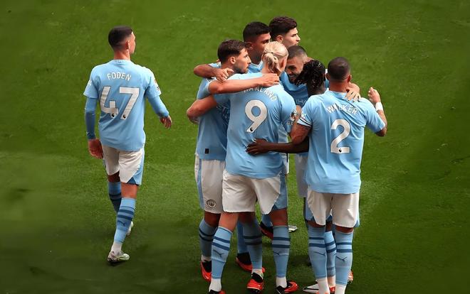 第24分钟,曼城右路起球精准制导,塞梅尼奥门前机敏倒地铲射,皮球擦地入网,1-0;第30分钟,塞梅尼奥与奥赖利完成二过一撞墙配合,后者突入禁区小角度冷静推射,2-0;第39分钟,福登与哈兰德精妙连线,哈兰德禁区弧顶接球顺势贴地远射,皮球直挂球门左下死角,3-0!上半场结束,胜负已然失去悬念。