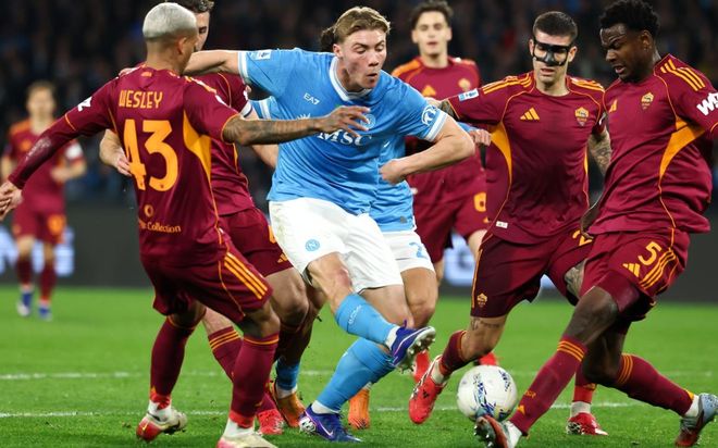 意甲第25轮的一场比赛展开争夺,卫冕冠军那不勒斯在主场迎战罗马。那不勒斯前24场联赛取得15胜4平5负的成绩,排名第3,与榜首的国际米兰差距很大,夺冠的希望几乎破灭。对于那不勒斯来说,获得欧冠资格是比较现实的目标。在周三那不勒斯踢了一场强度很大的意大利杯淘汰赛,结果通过点球大战,惨遭科莫淘汰出局。如今回归联赛,那不勒斯面对的是争四劲敌罗马。结果,那不勒斯艰难战平,丢掉了2分。