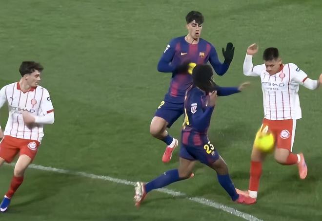 比赛开始,实力更胜一筹的巴萨反客为主,踢得积极主动,第6分钟亚马尔在熟悉的破门区域兜射颇具威胁,可惜皮球偏出。第17分钟巴萨再次打出了边路传中的战术,拉菲尼亚在禁区过人很漂亮,可惜射门再次偏出。托雷斯、费尔明同样浪费了不少的机会,临门一脚欠些火候。第29分钟赫罗纳踢出流畅的反击,配合非常默契,可惜瓦纳特的打门被加西亚挡出。上半场快结束的时候,奥尔莫造点,这是巴萨改写比分的好机会,但是亚马尔主罚不进,双方0-0进入中场休息。