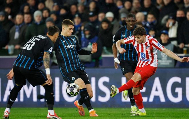 比赛刚开始7分钟,马竞就获得点球机会。阿尔瓦雷斯主罚,他骗过门将,稳稳把球罚进,帮助马竞获得梦幻开局。5分钟后,奥涅迪卡在禁区前沿起脚低射,踢得太正了。门将轻松把球没收。第26分钟,小西蒙尼外围远射,踢高了。随后,贾孔的远射稍稍偏出右侧立柱。第37分钟,阿尔瓦雷斯禁区弧顶处尝试远射,门将倒地把球没收。半场补时阶段,马竞再次进球!卢克曼门前包抄破门。半场结束,马竞2-0领先布鲁日。