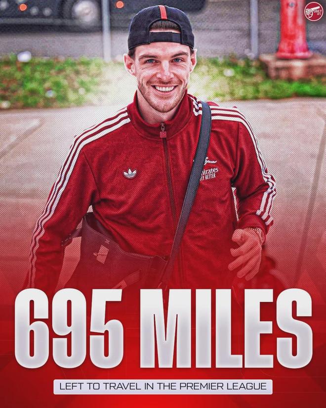 TA统计,阿森纳在本赛季剩余的英超比赛中拥有最少的客场总里程,只有695英里,这比其他球队少一半左右,曼城剩余的英超客场总里程为1269英里。