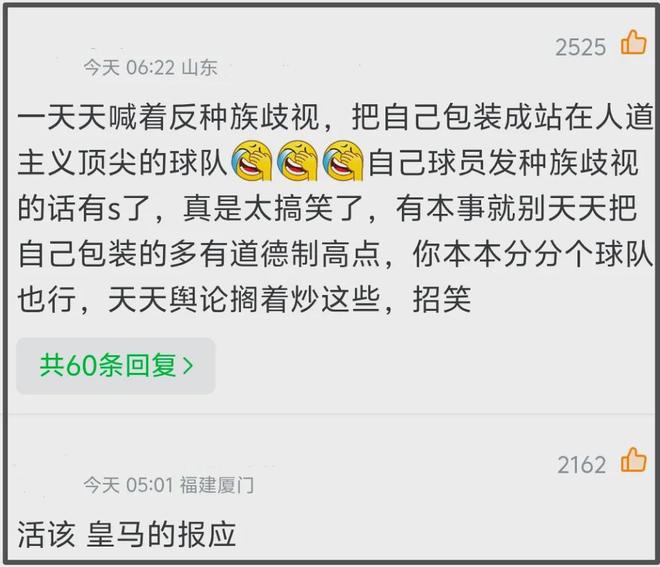 要知道就在不久前的欧冠附加赛上,现场出现了歧视黑人球员的事件,皇马俱乐部立马发布反歧视声明——敢情别人歧视他们球员不行,他们球员歧视中国人就可以?