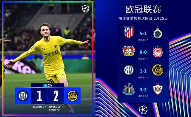 北京时间2月25日4点,25-26赛季欧冠淘汰赛附加赛次回合再次上演冷门。作为本赛季意甲领头羊与上赛季欧冠亚军的国际米兰,坐镇主场1-2不敌挪超球队博德闪耀,两回合总比分2-5惨遭双杀出局!