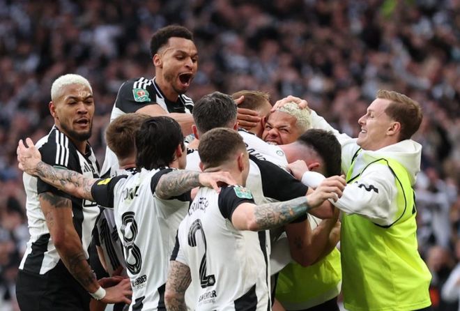下半场易边再战。第50分钟,卡拉巴赫扳回一球。杜兰带球突入禁区,低射近角,球进了!不过,只过了2分钟,卡拉巴赫就再次丢球。特里皮尔起球传中,博特曼门前头球顶进!第54分钟,纽卡斯尔联进行大规模换人调整,霍尔、威洛克和安东尼-戈登替补上场,特里皮尔、博特曼和乔林顿被换下。